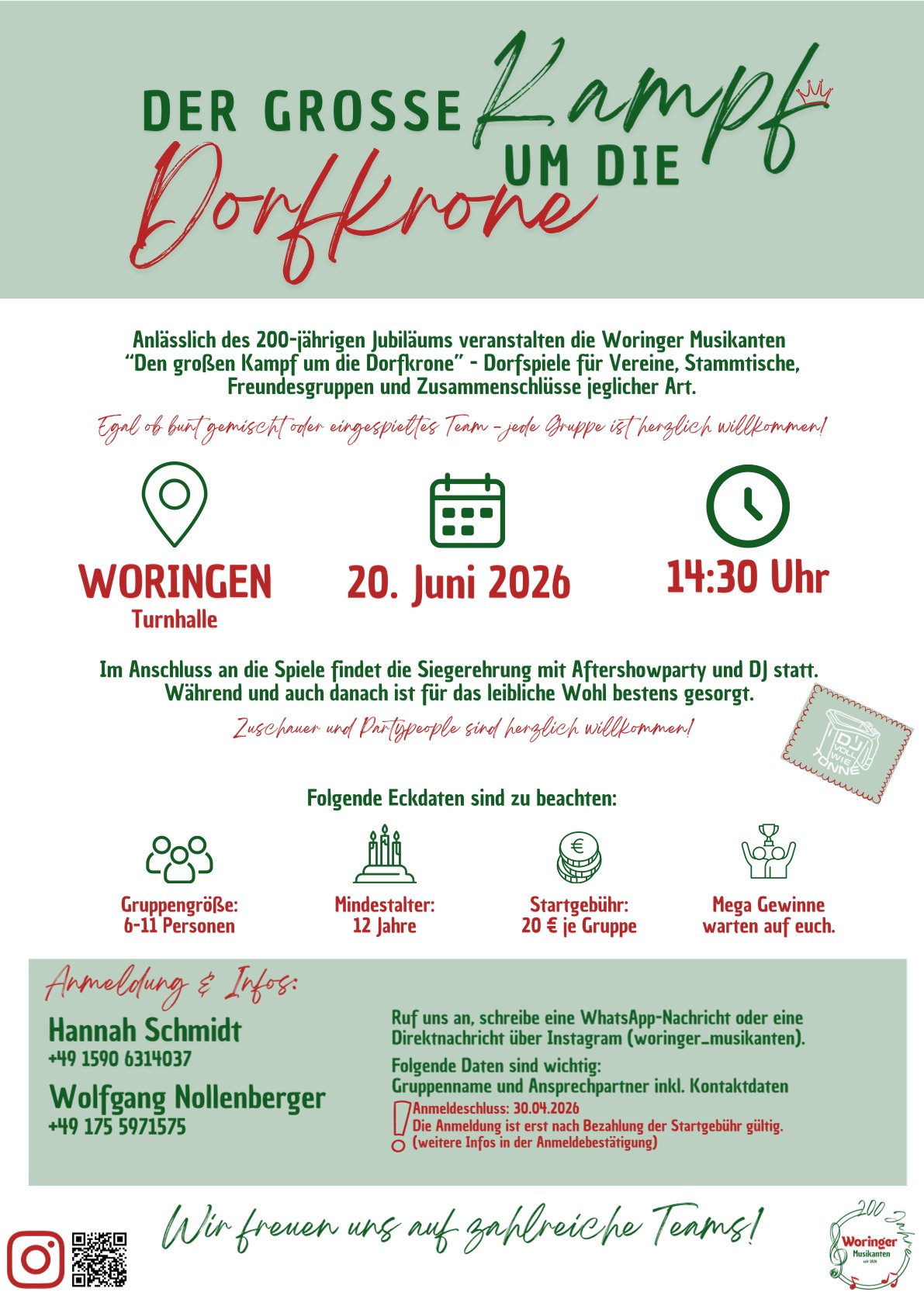 Für Fragen und Anregungen steht unsere Jugendleiterin Ronja Scheitzeneder gerne zur Verfügung: jugendleitung@woringer-musikanten.de